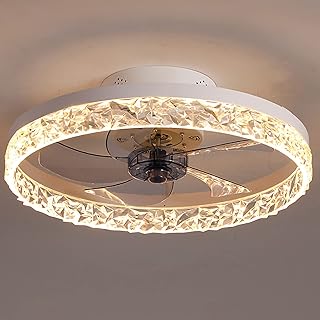 19.7" Ceiling Fan With Light And Remote control Moderate, smart Bladeless Ceiling Fan Light, Household Fan Pendant With 3 Colors 5 Speeds Timing Low Profile Fan, for Bedroom Living Room Kitchen office